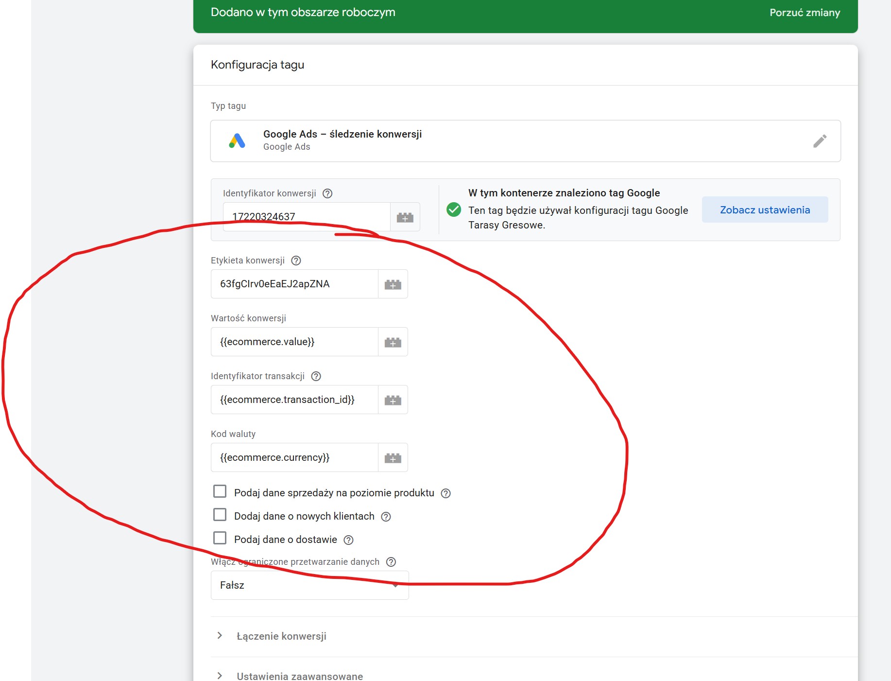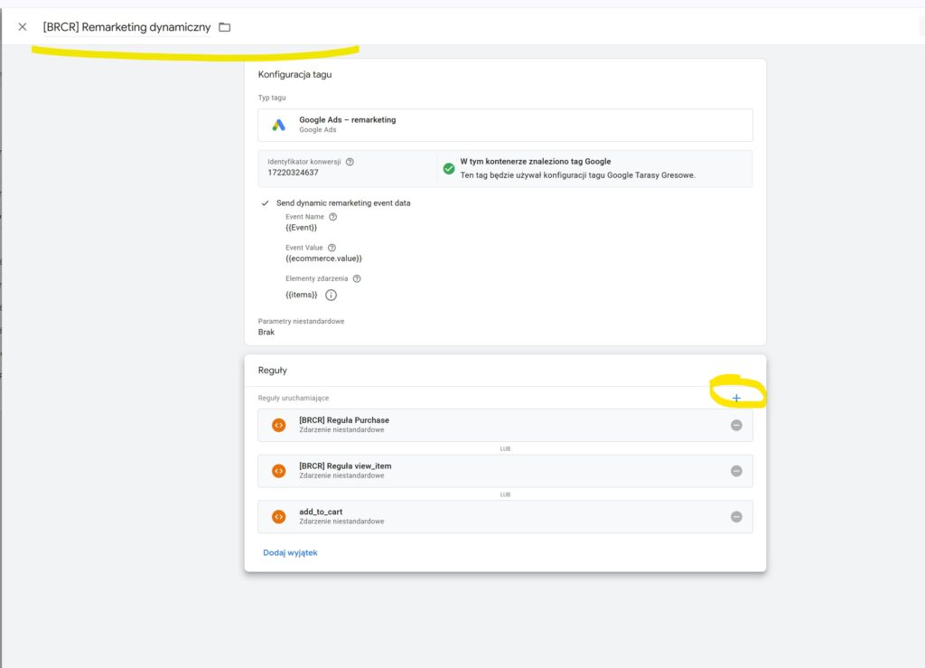 Następnie dodajemy remarketing dynamiczny na opuszczone koszyki